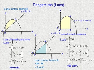 X y 0 P y 3x 2 10x 8 Q 2 x y 0 y 6x 4 P Q x y 0 y 6x 4 P Q Luas Luas 12. 51 Mencari luas di bawah sesuatu luas dan isipadu L y δ x. Konsep tambah adalah diutamakan.